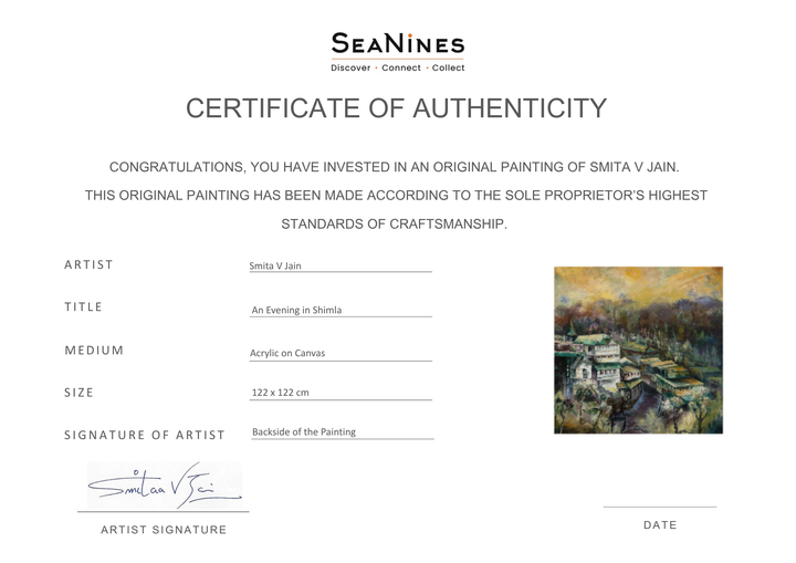 The green roofed buildings of Shimla nestled in the mountaintops of the Shivalik mountain range glitter like emeralds in the warm glow of the setting sun.