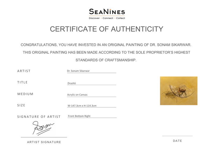 Dr. Sonam Sikarwar was born and raised in Bhopal, and her early immersion in the city’s rich cultural heritage led her to Bharat Bhavan in 2007, where her path as an abstract painter truly began. Since then, she has embarked on a relentless exploration of texture, form, and color—developing series from seed-inspired motifs to visions of our future world. A recipient of state and national awards and holder of a 2016 PhD, she now creates independently in her own workshop.