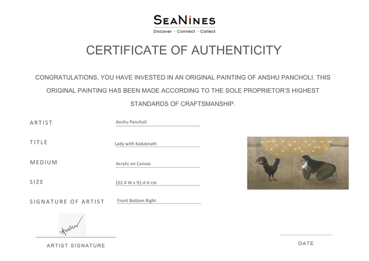 Artist has depicted a lady looking at kadaknath.