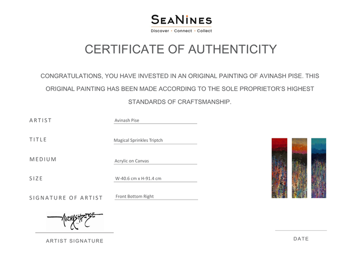 The artist has embraced nature with all their heart, admiring it deeply through their paintings. This abstract artwork serve as a vivid expression of their love for the natural world, conveyed through the colours of imagination and creativity. Rather than seeing nature with the eyes alone, the artist portrays it through the lens of the mind and heart—capturing an inner vision shaped by emotion and thought.