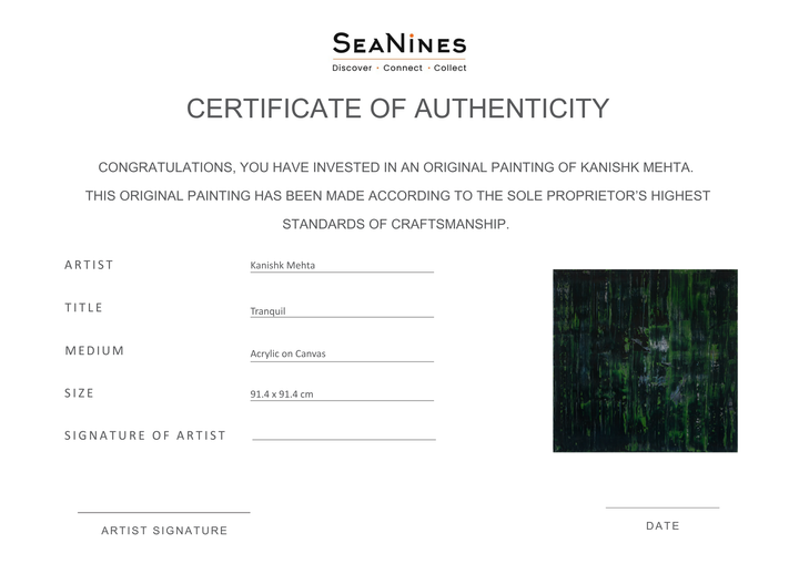 Kanishk's painting Tranquil is a serene abstract work that captures a peaceful ambiance through soft, harmonious colors and gentle, flowing forms, inviting viewers to experience a moment of calm and reflection.