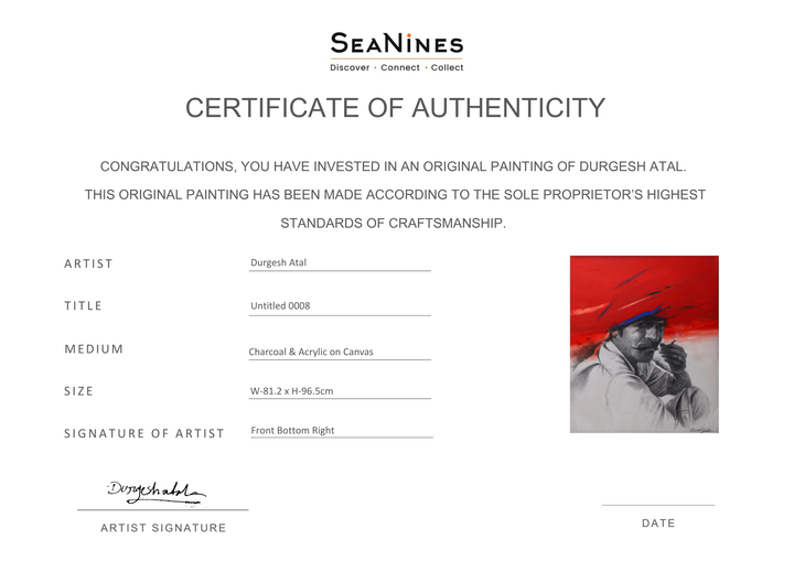 Bing a proud native of Pink city, Durgesh mostly finds his inspirations around the Rajasthani culture. Turban(Safa)-the pride symbol of state, and worn by the common man are very close to his heart. Their presence forms the main characteristics of his works along with the strong gaze, rustic looks, big moustache and wrinkled skin from the everyday life struggles.