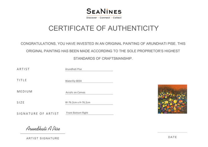 The artist’s fascination with waterlilies isn’t arbitrary. She comes from a place where lily ponds are as common as city parks elsewhere. They’re woven into the fabric of her daily life. This intimate connection to the environment is the inspiration of her art. She isn’t just painting pretty flowers, she’s painting a piece of her soul, a reflection of the world that surrounds and nourishes her. Waterlilies are an element deeply rooted within her being and her everyday reality. They are an endless, bottomless source of inspiration.